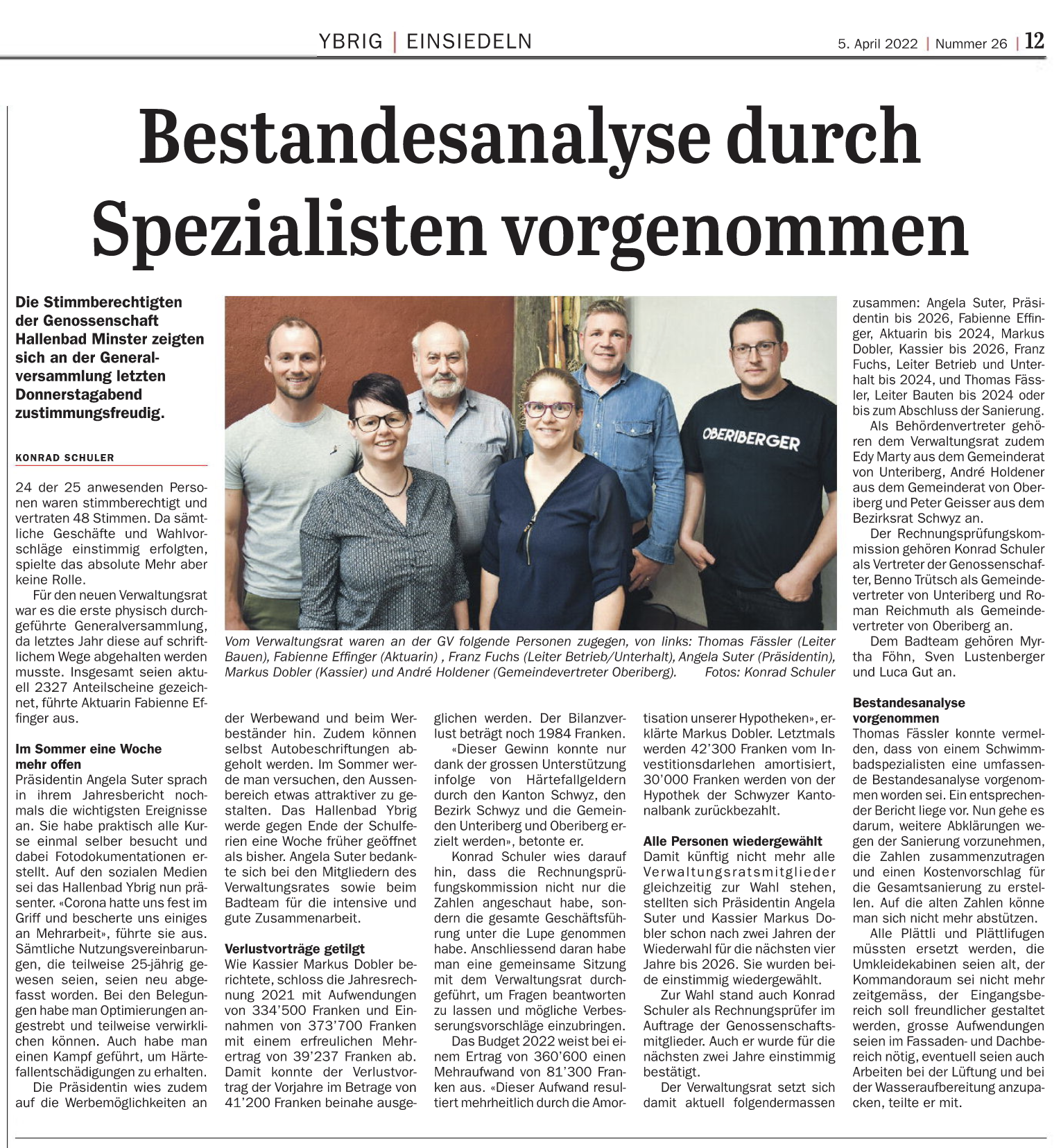 Im Bote und im Einsiedler Anzeiger gabs einen schönen Rückblick auf 50 Jahre Hallenbad und einen Ausblick in die Zukunft.